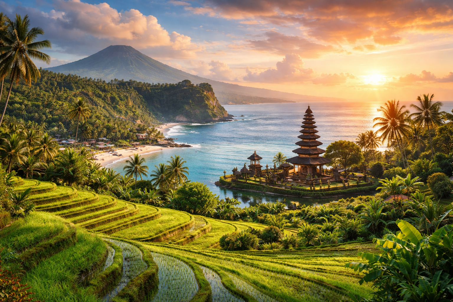 Bali is a world-famous island destination in Indonesia, celebrated for its breathtaking beaches, emerald rice terraces, spiritual temples, and vibrant traditions. Often called the “Island of the Gods,” Bali offers a perfect balance of relaxation and adventure. Travelers can explore the cultural heart of Ubud, unwind on the sandy shores of Kuta and Seminyak, or witness dramatic sunsets at Uluwatu Temple. From traditional Balinese dance performances to volcanic landscapes and luxury wellness retreats, Bali provides a magical escape for every type of traveler.